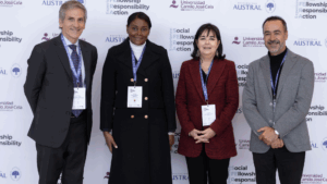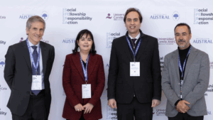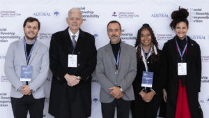 La inauguración continuó con una conferencia sobre sostenibilidad a cargo de Verónica Torres, gerente de Sostenibilidad de la Universidad, un bloque temático sobre Objetivos de Desarrollo Sostenible moderado por Raquel Ariza, y una presentación del ecosistema educativo de la Universidad a cargo de Esteban Pittaro, secretario académico.