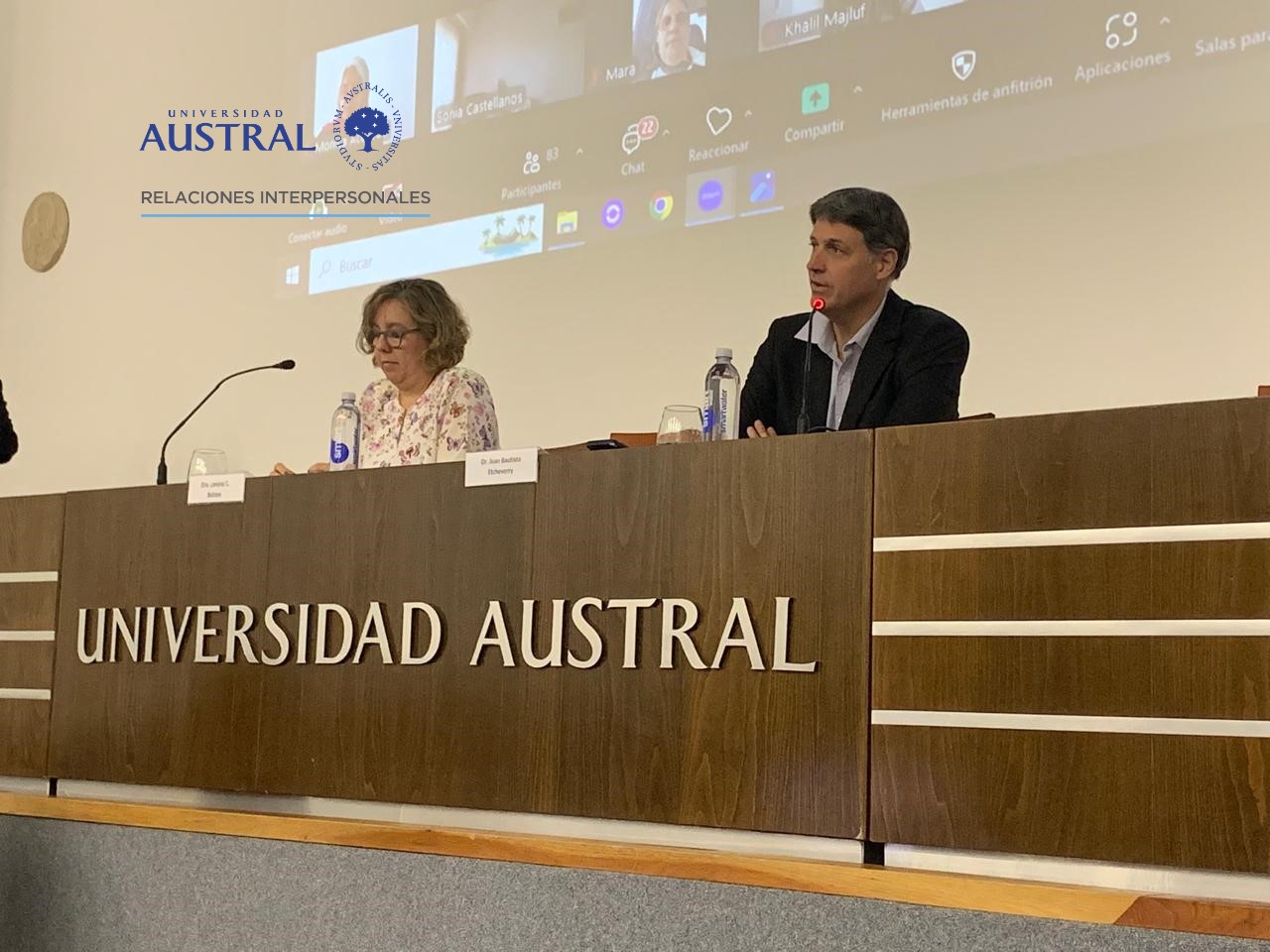 Con la participación de asistentes presenciales y virtuales, se realizó la apertura con las palabras del Dr. Juan Bautista Etcheverry, vicerrector de Investigación de la Universidad Austral, y de la Dra. Lorena Bolzon, decana del Instituto de Ciencias para la Familia.